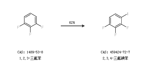 1.通过1,2,3-三氟苯合成2,3,4-三氟碘苯,收率约62%;