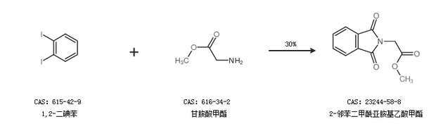 2.通过1,2-二碘苯和甘胺酸甲酯合成2-邻苯二甲酰亚胺基乙酸甲酯,收率约30%;