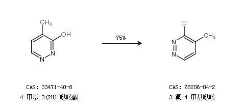 1.通过4-甲基-3(2H)-哒嗪酮合成3-氯-4-甲基哒嗪,收率约75%;
