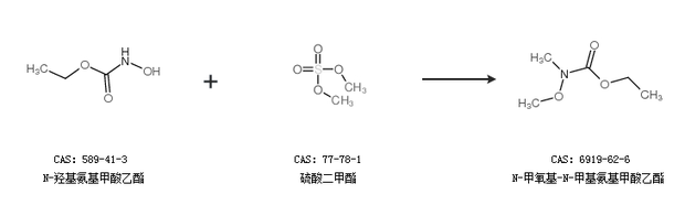1.通过N-羟基氨基甲酸乙酯和硫酸二甲酯合成N-甲氧基-N-甲基氨基甲酸乙酯