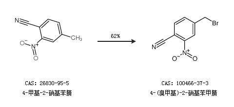 1.通过4-甲基-2-硝基苯腈合成4-(溴甲基)-2-硝基苯甲腈,收率约62%;
