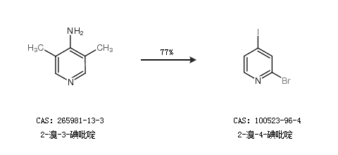 2.通过邻溴吡啶合成2-溴-4-碘吡啶,收率约66%;