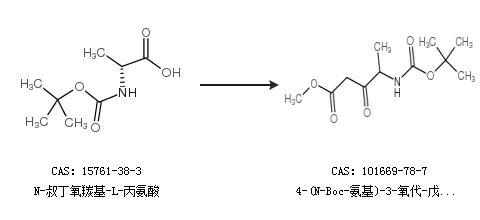2.通过N-叔丁氧羰基-L-丙氨酸合成4-(N-Boc-氨基)-3-氧代-戊酸甲酯