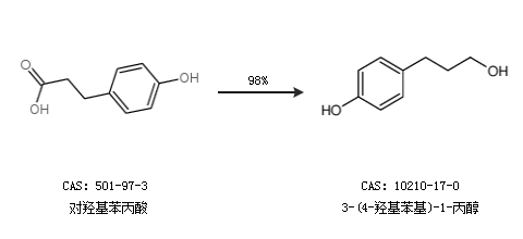 2.通过对羟基苯丙酸合成3-(4-羟基苯基)-1-丙醇,收率约98%;