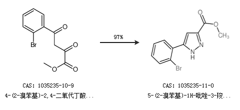 1.通过4-(2-溴苯基)-2,4-二氧代丁酸甲酯合成5-(2-溴苯基)-1H-吡唑-3-羧酸甲酯,收率约97%;