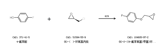 1.通过4-氟苯酚和(R)-(?)-环氧氯丙烷合成(R)-2-((4-氟苯氧基)甲基)环氧乙烷,收率约41%;