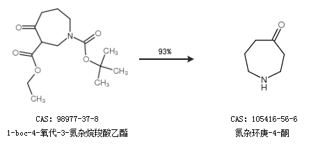 1.通过1-boc-4-氧代-3-氮杂烷羧酸乙酯合成氮杂环庚-4-酮,收率约93%;
