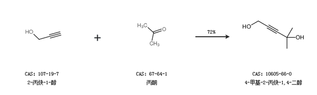 1.通过2-丙炔-1-醇和丙酮合成4-甲基-2-丙炔-1,4-二醇,收率约72%;