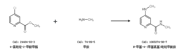1.通过4-氯吡啶-2-甲酸甲酯和甲胺合成N-甲基-4-(甲基氨基)吡啶甲酰胺