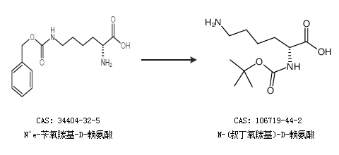 1.通过N^e-苄氧羰基-D-赖氨酸合成N-(叔丁氧羰基)-D-赖氨酸