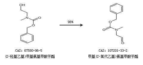 1.通过(2-羟基乙基)甲基氨基甲酸苄酯合成甲基(2-氧代乙基)氨基甲酸苄酯,收率约98%;