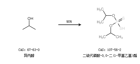 1.通过异丙醇合成二硫代磷酸-O,O-二(1-甲基乙基)酯,收率约90%;