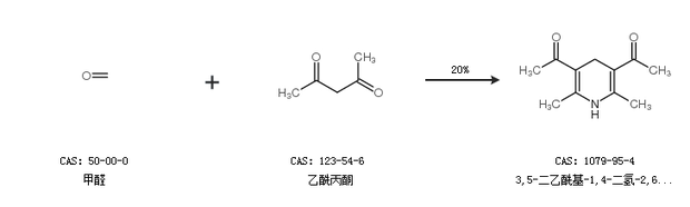 2.通过甲醛和乙酰丙酮合成3,5-二乙酰基-1,4-二氢-2,6-二甲基吡啶,收率约20%;