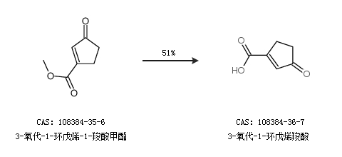1.通过3-氧代-1-环戊烯-1-羧酸甲酯合成3-氧代-1-环戊烯羧酸,收率约51%;
