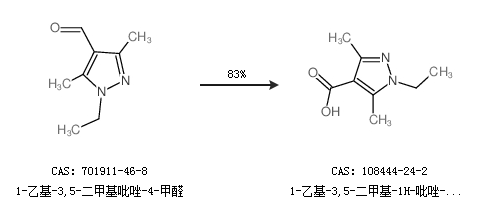 1.通过1-乙基-3,5-二甲基吡唑-4-甲醛合成1-乙基-3,5-二甲基-1H-吡唑-4-羧酸,收率约83%;