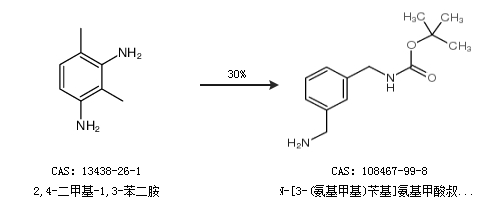 2.通过2,4-二甲基-1,3-苯二胺合成N-[3-(氨基甲基)苄基]氨基甲酸叔丁酯,收率约30%;