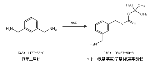 1.通过间苯二甲胺合成N-[3-(氨基甲基)苄基]氨基甲酸叔丁酯,收率约94%;