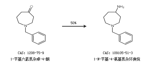 1.通过1-苄基六氢氮杂卓-4-酮合成1-N-苄基-4-氨基氮杂环庚烷,收率约50%;