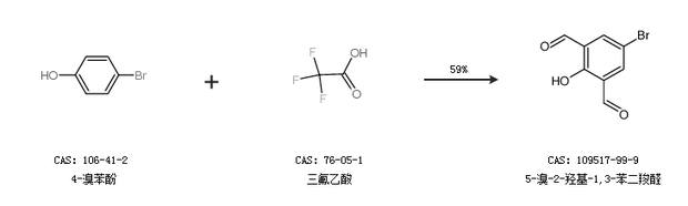 2.通过4-溴苯酚和三氟乙酸合成5-溴-2-羟基-1,3-苯二羧醛,收率约59%;