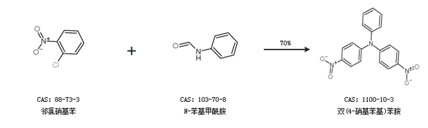 2.通过邻氯硝基苯和N-苯基甲酰胺合成双(4-硝基苯基)苯胺,收率约70%;