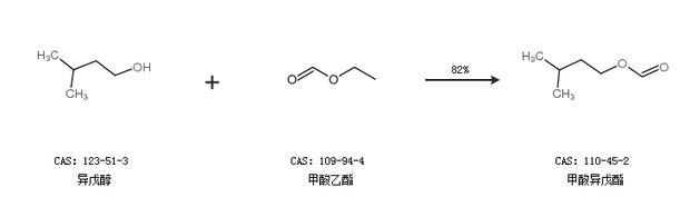 1.通过异戊醇和甲酸乙酯合成甲酸异戊酯,收率约82%;