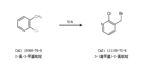 1.通过2-氯-3-甲基吡啶合成3-(溴甲基)-2-氯吡啶,收率约51%;