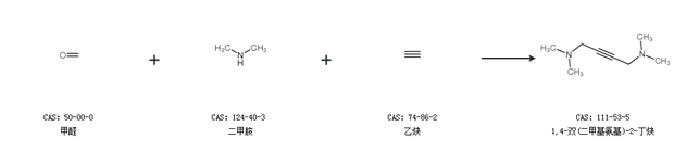 2.通过甲醛、二甲胺和乙炔合成1,4-双(二甲基氨基)-2-丁炔