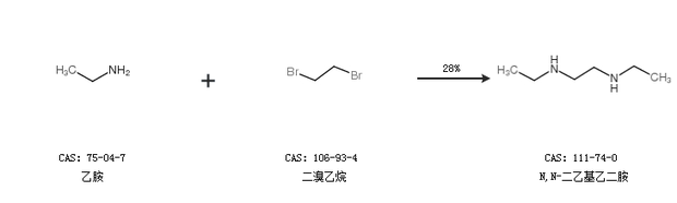 2.通过乙胺和二溴乙烷合成N,N-二乙基乙二胺,收率约28%;