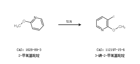 2.通过2-甲氧基吡啶合成3-碘-2-甲氧基吡啶,收率约51%;