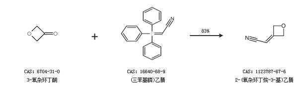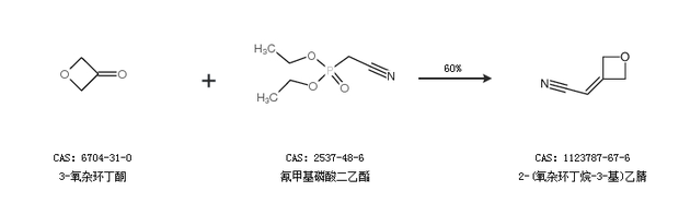 2.通过3-氧杂环丁酮和(三苯基膦)乙腈合成2-(氧杂环丁烷-3-基)乙腈,收率约83%;