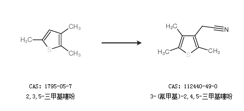 1.通过2,3,5-三甲基噻吩合成3-(氰甲基)-2,4,5-三甲基噻吩