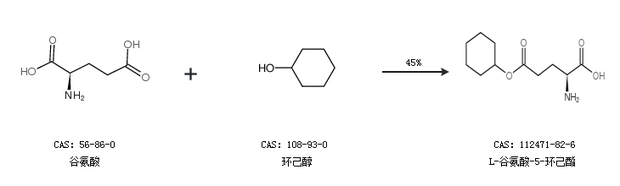 1.通过谷氨酸和环己醇合成L-谷氨酸-5-环己酯,收率约45%;