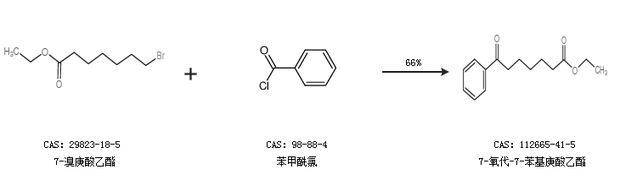 1.通过7-溴庚酸乙酯和苯甲酰氯合成7-氧代-7-苯基庚酸乙酯,收率约66%;