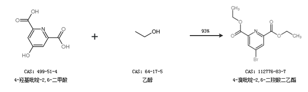 1.通过4-羟基吡啶-2,6-二甲酸和乙醇合成4-溴吡啶-2,6-二羧酸二乙酯,收率约93%;