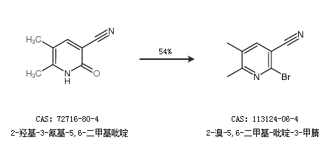1.通过2-羟基-3-氰基-5,6-二甲基吡啶合成2-溴-5,6-二甲基-吡啶-3-甲腈,收率约54%;