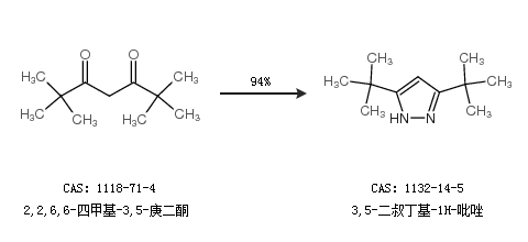 1.通过2,2,6,6-四甲基-3,5-庚二酮合成3,5-二叔丁基-1H-吡唑,收率约94%;