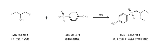 1.通过1,3-二氟-2-丙醇和对甲苯磺酰氯合成(1,3-二氟-2-丙基)-对甲苯磺酸,收率约91%;