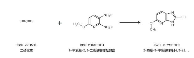 1.通过二硫化碳和6-甲氧基-2,3-二氨基吡啶盐酸盐合成2-巯基-5-甲氧基咪唑[4,5-b]吡啶