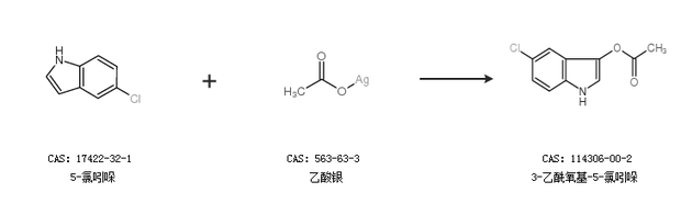 1.通过5-氯吲哚和乙酸银合成3-乙酰氧基-5-氯吲哚