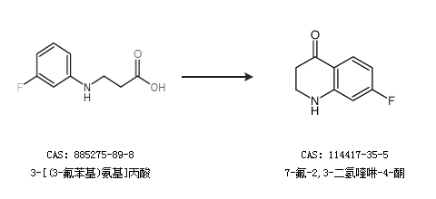 1.通过3-[(3-氟苯基)氨基]丙酸合成7-氟-2,3-二氢喹啉-4-酮