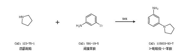 2.通过四氢吡咯和间溴苯胺合成3-吡咯烷-1-苯胺,收率约94%;