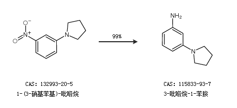 1.通过1-(3-硝基苯基)-吡咯烷合成3-吡咯烷-1-苯胺,收率约99%;