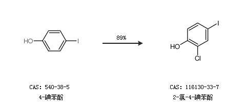 1.通过4-碘苯酚合成2-氯-4-碘苯酚,收率约89%;