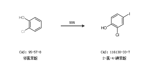 2.通过邻氯苯酚合成2-氯-4-碘苯酚,收率约99%;