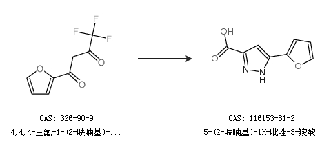 1.通过4,4,4-三氟-1-(2-呋喃基)-1,3-丁二酮合成5-(2-呋喃基)-1H-吡唑-3-羧酸
