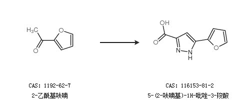 2.通过2-乙酰基呋喃合成5-(2-呋喃基)-1H-吡唑-3-羧酸