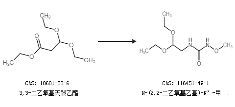 2.通过3,3-二乙氧基丙酸乙酯合成N-(2,2-二乙氧基乙基)-N’-甲氧基脲