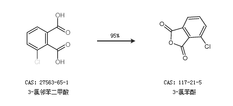2.通过3-氯邻苯二甲酸合成3-氯苯酐,收率约95%;