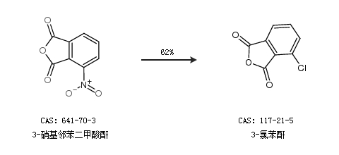 1.通过3-硝基邻苯二甲酸酐合成3-氯苯酐,收率约62%;