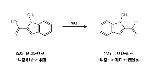 1.通过1-甲基吲哚-2-甲酸合成1-甲基-1H-吲哚-2-羰酰氯,收率约99%;